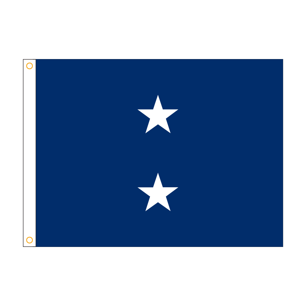 This Navy Admiral flag features a striking blue field adorned with two white stars, crafted from durable 200 denier nylon. The stars are expertly appliquéd for a high-quality finish. Available in a size of 3×4 ft with heading and grommets, this flag is perfect for displaying your patriotic spirit.