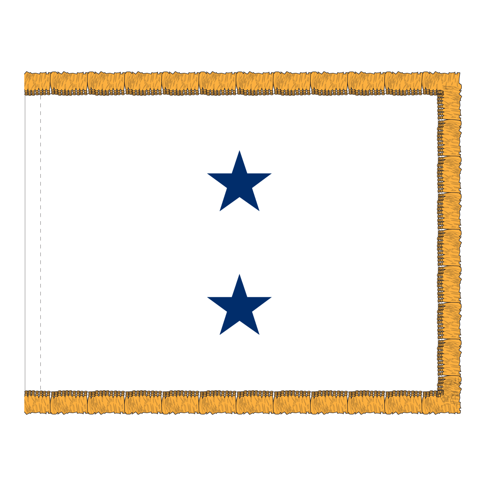 Enhance your display with our 3×4 ft 2 Star Navy Admiral flag, featuring a striking white field and blue stars. Crafted from durable 200 denier nylon, this flag is designed for longevity. The stars are expertly appliquéd, providing a rich and professional appearance. Choose the pole hem with fringe finish for added elegance. Perfect for both indoor and outdoor settings.