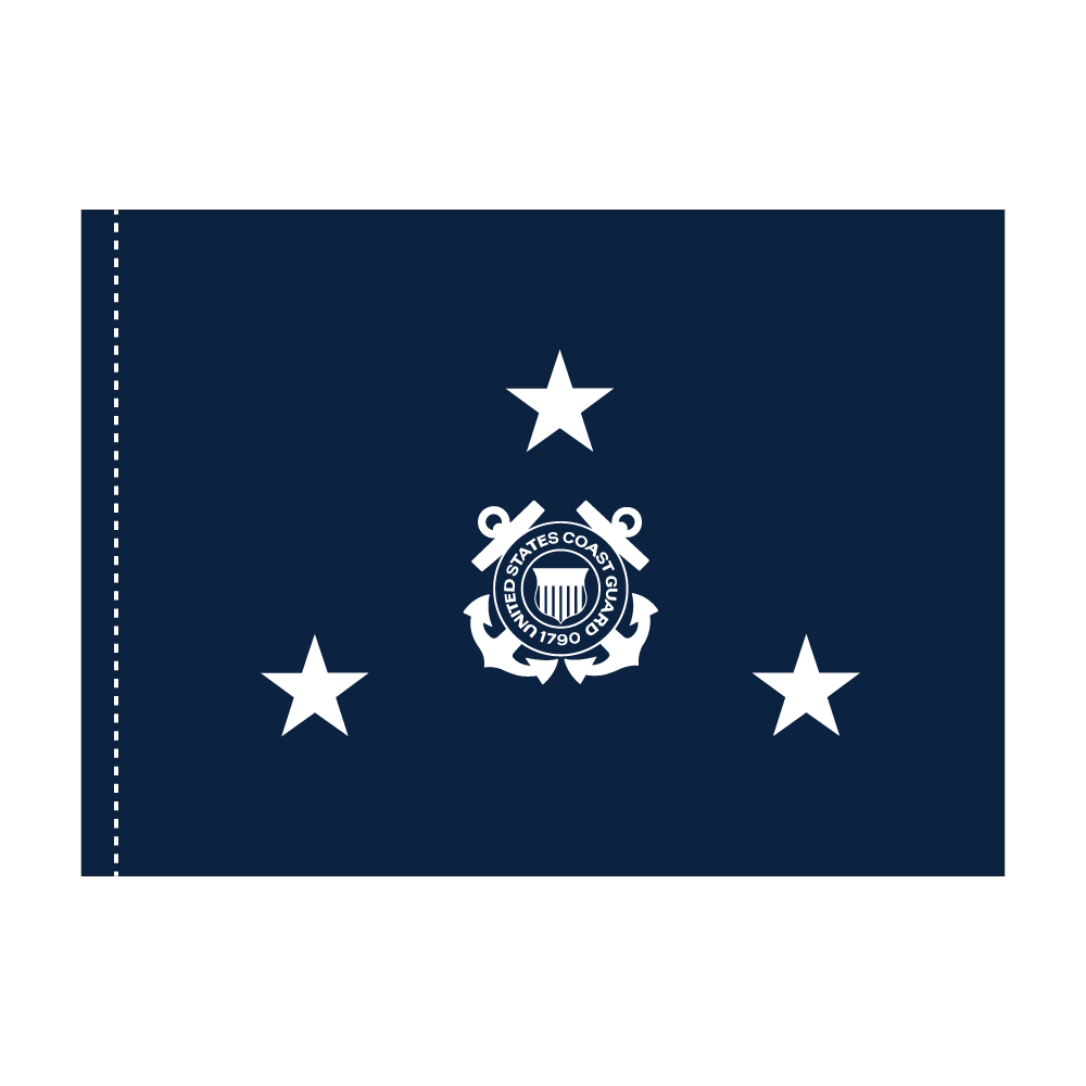 This 3×4 ft Coast Guard 3 Star Admiral flag features a durable construction from 200 denier nylon. The stars are expertly appliquéd, ensuring a high-quality finish. Designed with a pole hem for easy display, this flag is perfect for honoring service and pride.