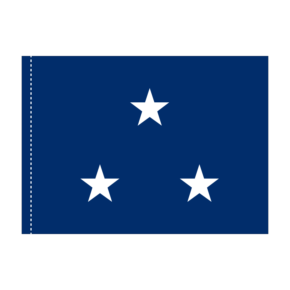 Elevate your display with our 3×4 ft Navy Admiral officer flag, expertly crafted from durable 200 denier nylon. Featuring beautifully appliquéd white stars against a striking blue field, this flag is finished with a pole hem for easy mounting and showcasing. Perfect for honoring service and pride in any setting.