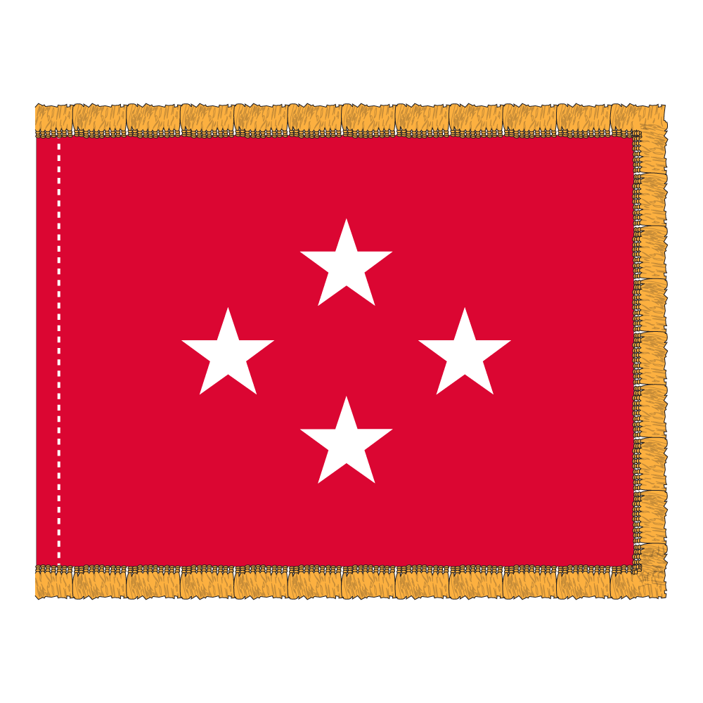 Showcasing exceptional craftsmanship, this 3×4 ft USMC 4 Star General flag is made from durable 200 denier nylon. The stars are meticulously appliquéd, ensuring vibrant detail and quality. Featuring a pole hem with fringe, this flag is perfect for display and adds a touch of elegance to any setting.