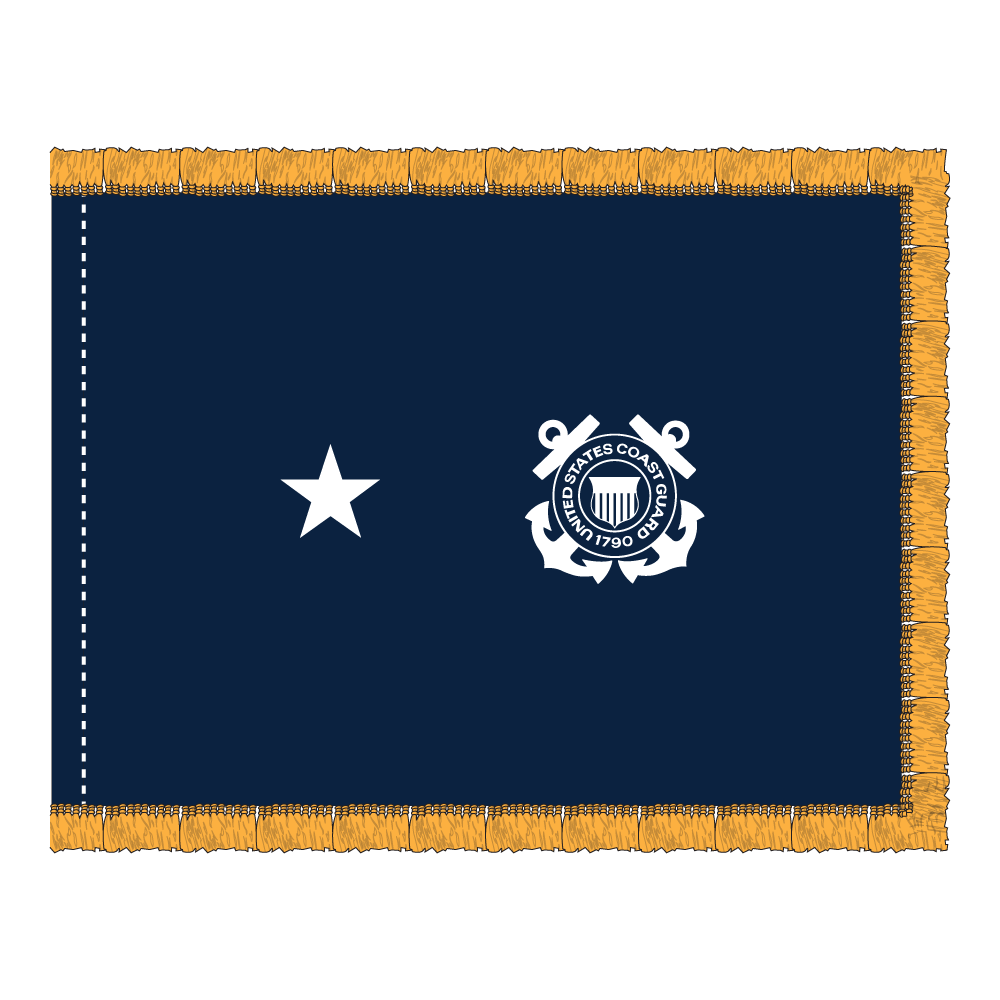 Honor the rank and service of a Coast Guard Admiral with this distinguished flag, designed for a refined presentation in any indoor environment.