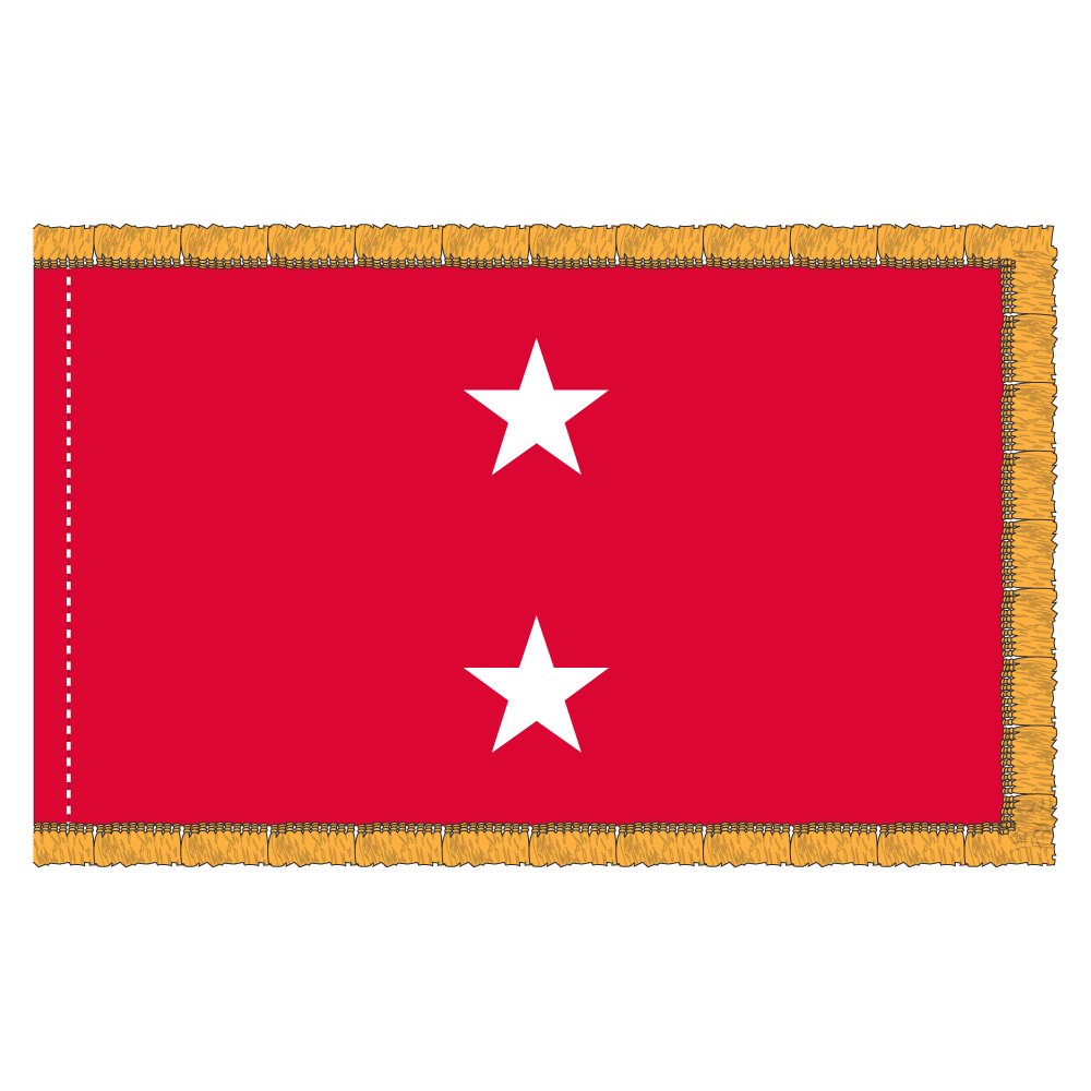 This 3×5 ft USMC 2 Star General flag is crafted from durable 200 denier nylon and features beautifully appliquéd stars. The flag comes with a pole hem and fringe, making it perfect for displaying with pride.