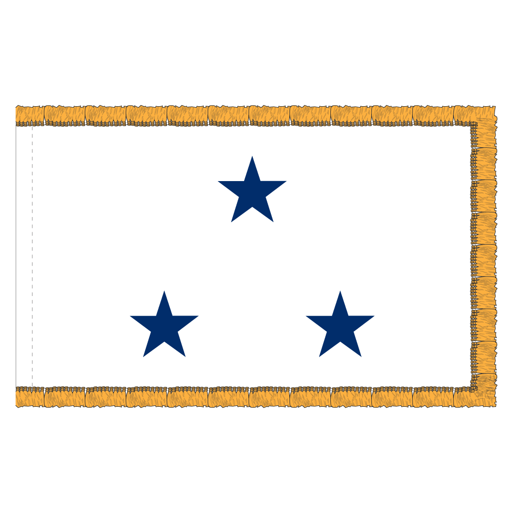 Navy Admiral Officer Flag, 3×5 ft, made from durable 200 denier nylon. Features appliquéd stars for a high-quality finish and comes with pole hem and fringe for striking display.