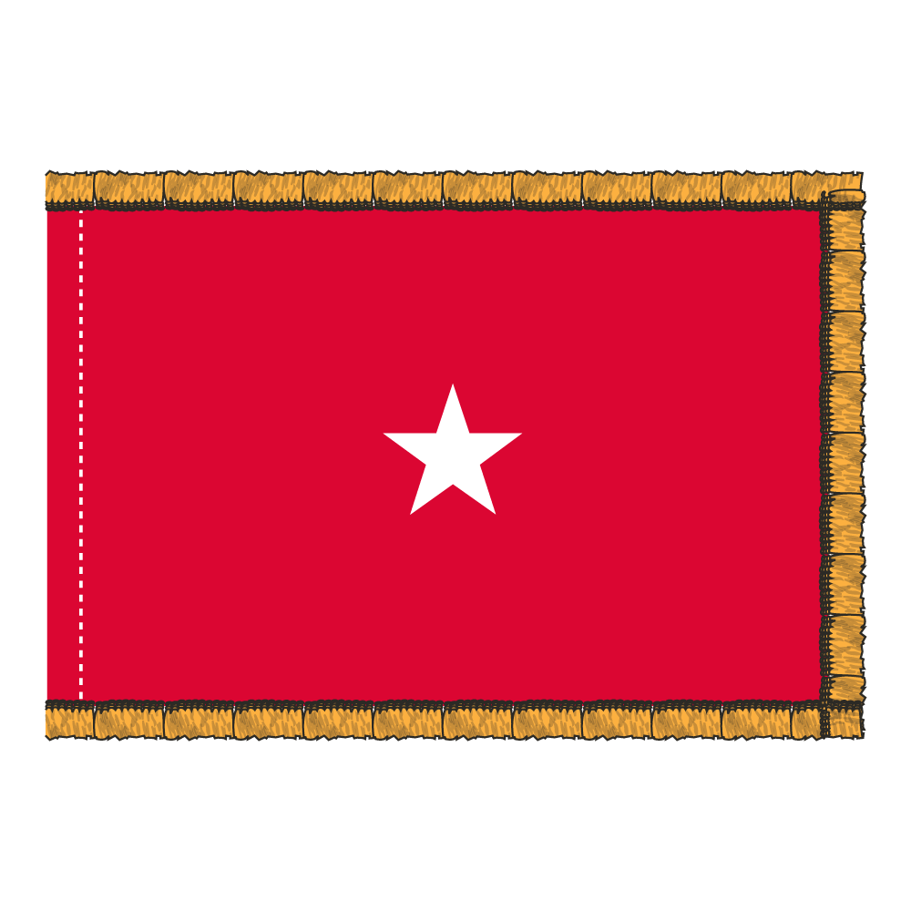 Introducing our 4×6 ft 1 Star Army General Flag, crafted from durable 200 denier nylon for exceptional strength and longevity. This flag features beautifully appliqued stars, ensuring vibrant visibility and lasting pride. Available with a pole hem with fringe (PHF) for a touch of elegance, perfect for displaying your respect and admiration for our brave leaders. Elevate your flag collection today!
