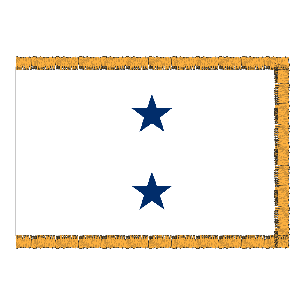 This 4×6 ft Navy Admiral officer flag features a striking white field with two blue stars. Crafted from durable 200 denier nylon, the stars are expertly appliquéd for a refined finish. Perfect for display, this flag comes with a pole hem and fringe, ensuring a polished presentation.