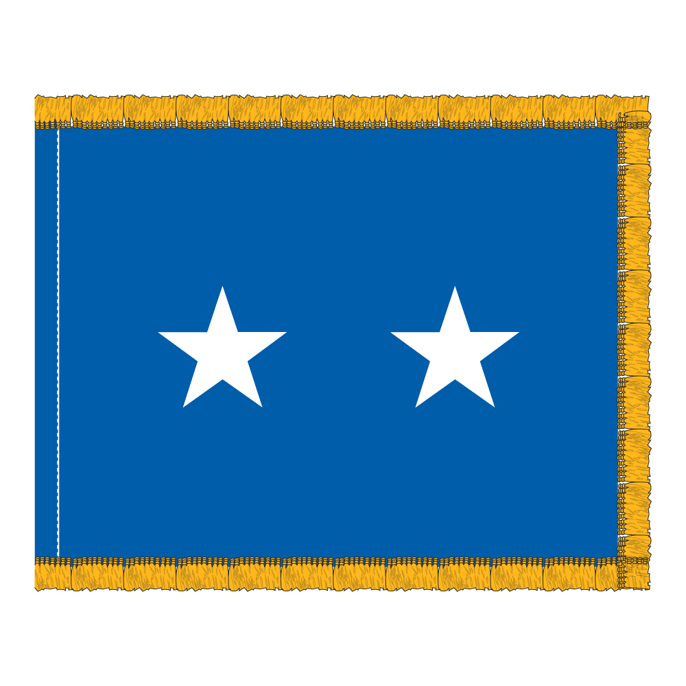 This 52×66 in USAF 2 Star General flag features a pole hem with fringe for an elegant finish. Crafted from durable 200 denier nylon, the stars are beautifully appliquéd, ensuring a striking display. Perfect for honoring service and pride.