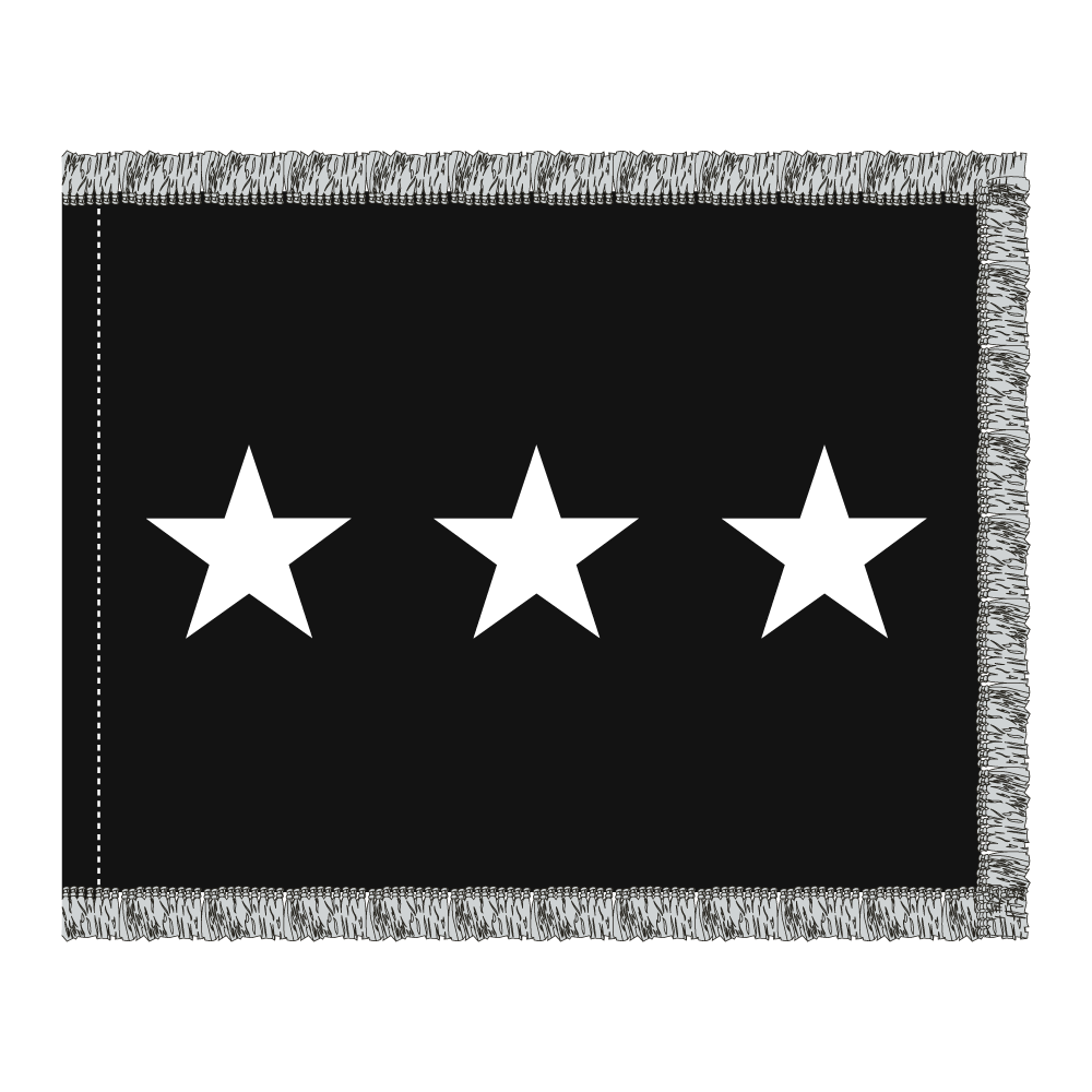 Introducing our 52×66 in 3 Star Space Force General Flag with Fringe, crafted from durable 200 denier nylon. The stars are expertly appliquéd, ensuring a high-quality and striking design. Perfect for display, this flag combines elegance and resilience for any setting.