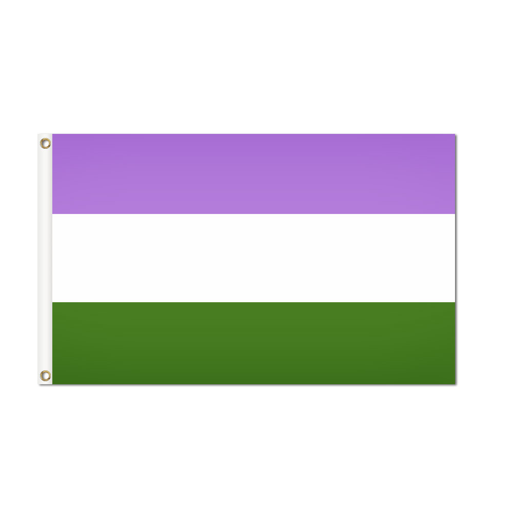 Our Non-Genderqueer Pride Flags with header and brass grommets are available in multiple sizes.