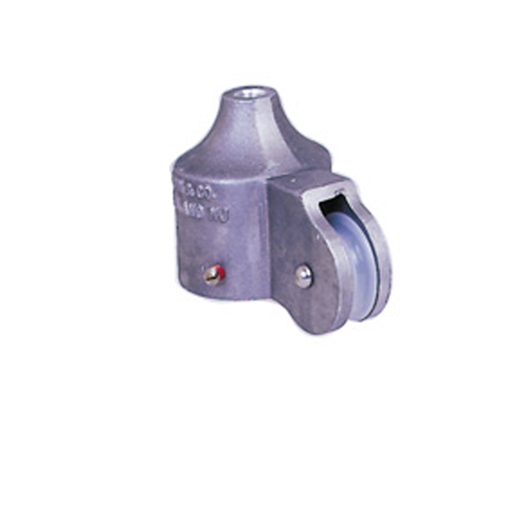 Topper for Flagpoles displayed at an angle from the side of a building. Drilled to accept 1/2 in. diameter spindle. Bore is 2 3/8 in.