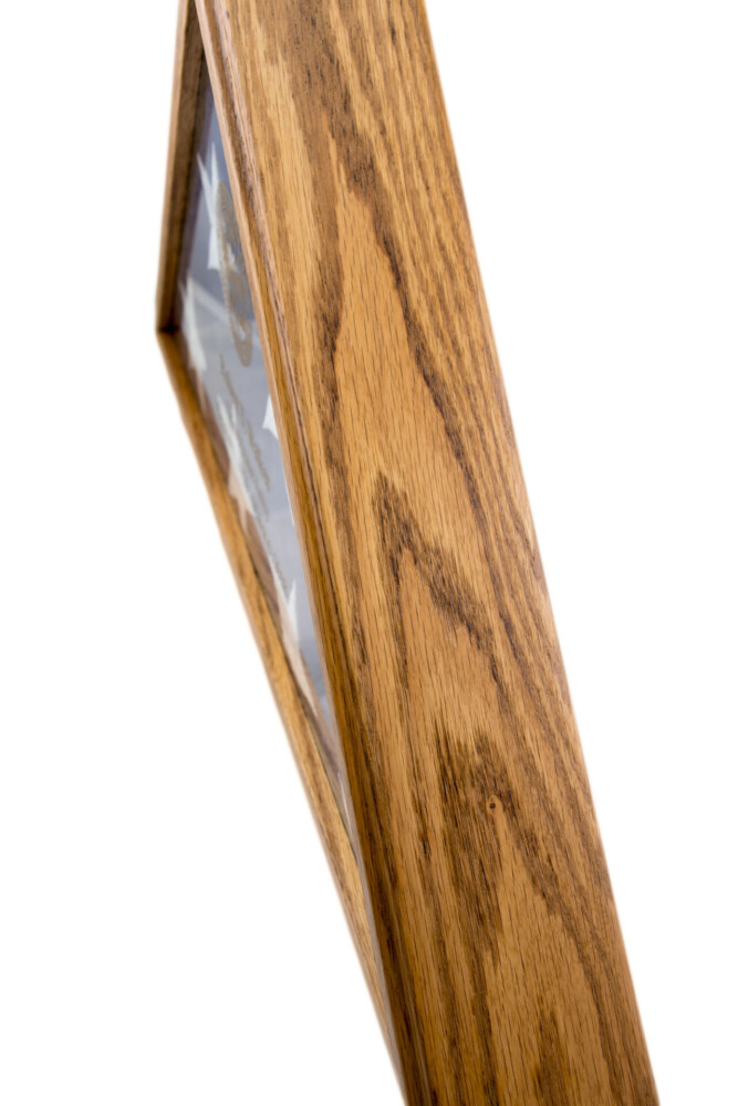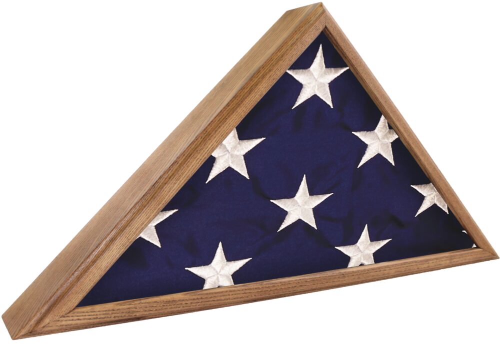 The Original American-Made Veteran Flag Case; this case is hand-stained using an Oak finish.